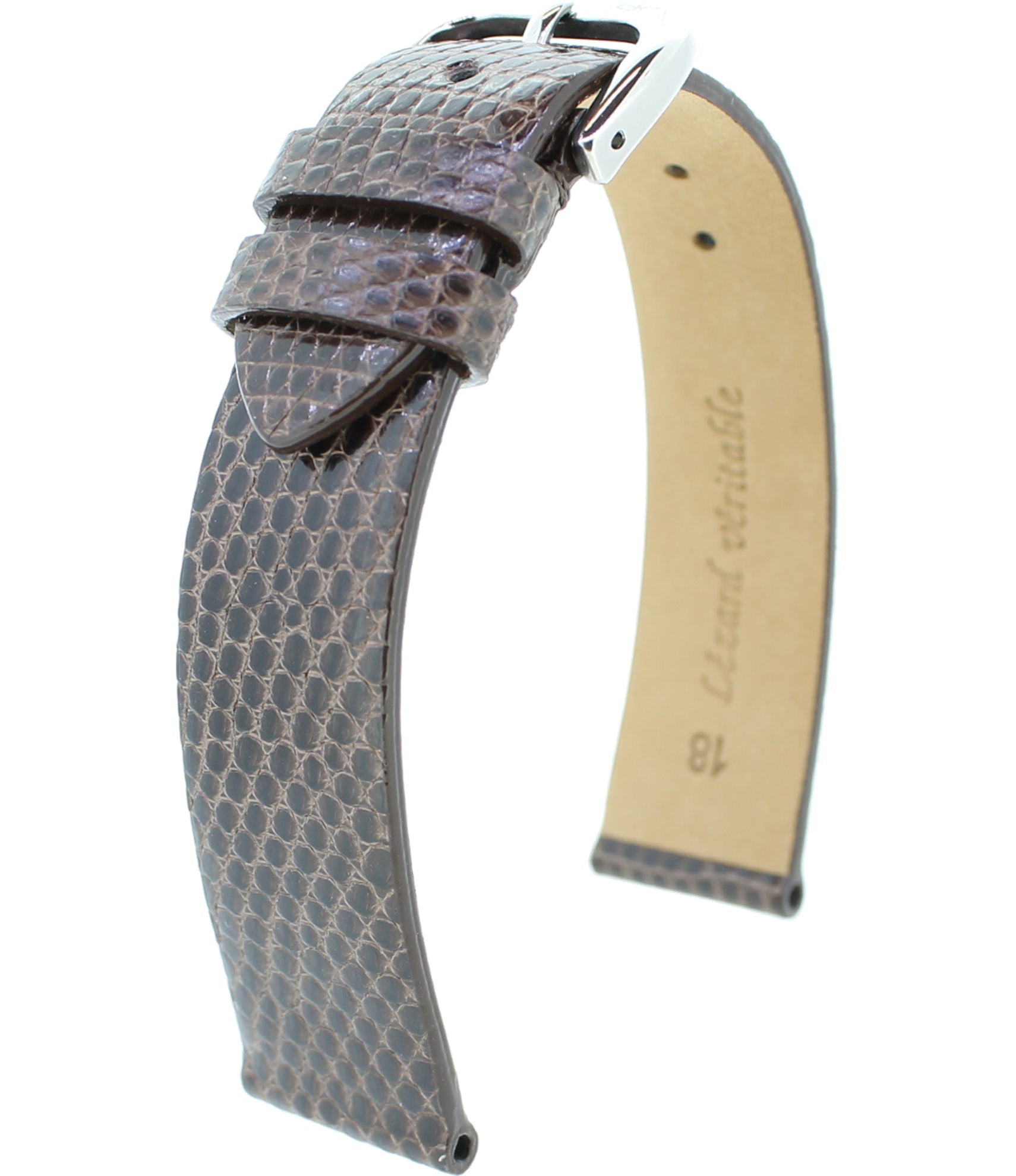Entdecken Sie die Eleganz und den Komfort unseres nahtlosen Eidechsenleder-Uhrenbands. Die feine Struktur des Leders verleiht jedem Uhrenmodell einen zeitlosen Glanz und eine exklusive Note. Dieses Uhrenband verjüngt sich harmonisch von der Anstoßbreite zur Schließe und bietet durch das weiche Kalbsleder auf der Innenseite ein außergewöhnlich angenehmes Tragegefühl. Verfügbar in den klassischen Farben Schwarz und Braun, passt dieses Uhrenband perfekt zu einer Vielzahl von Uhrenmodellen, besonders zu klassischen und feinen Zeitmessern. Wählen Sie aus zwei Farboptionen und fünf verschiedenen Breiten das ideale Uhrenband für Ihren Stil.