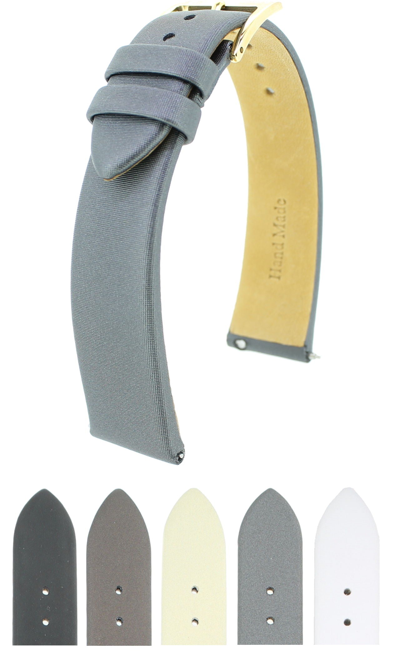 Discover the perfect combination of style and comfort with our Techno Silk® watch strap, a certified silk fabric that combines elegance and durability. This high-quality textile strap impresses with its subtle sheen and fine texture, making it a real eye-catcher on your wrist. The breathable silk ensures a comfortable fit, while the availability in five attractive colors—black, brown, beige, gray, and white—and various widths (12, 14, 16, 18, and 20 mm) ensures you'll find the perfect strap for your classic ladies' watch. Whether for everyday wear or special occasions, this watch strap is the ideal choice for anyone who values ??quality and aesthetics.