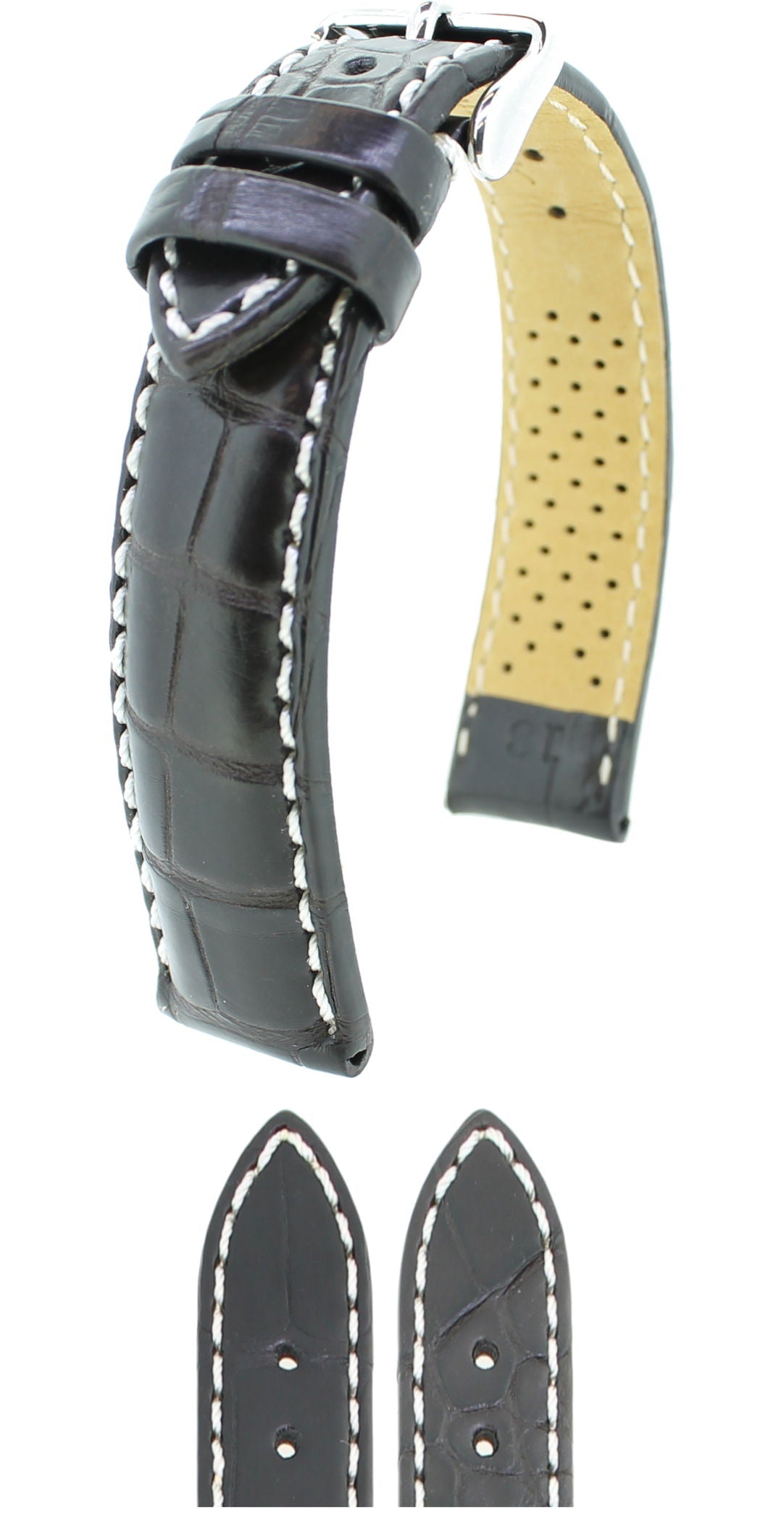 Luxurious hand-stitched crocodile leather watch strap with tone-on-tone stitching