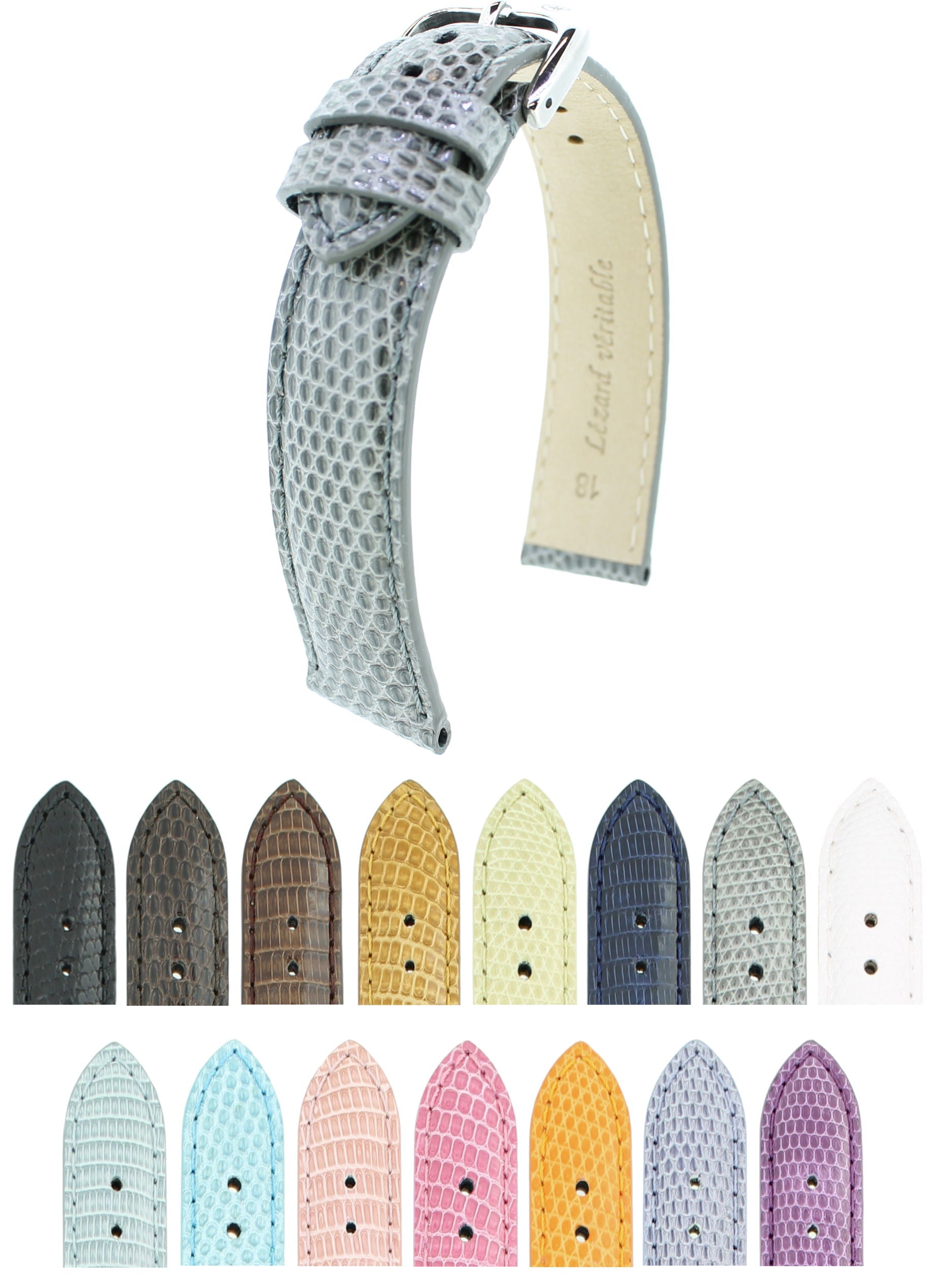 Genuine lizard by Rhein Fils elegant watch strap made of lizard leather in 15 colors