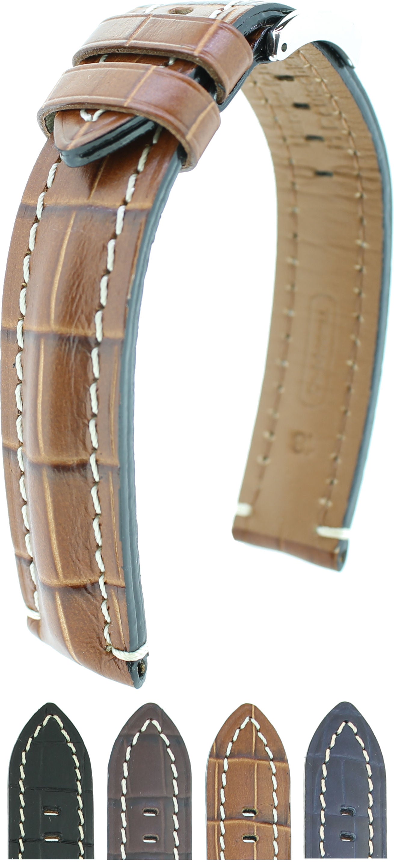 Elegant calfskin strap with alligator embossing and contrast stitching