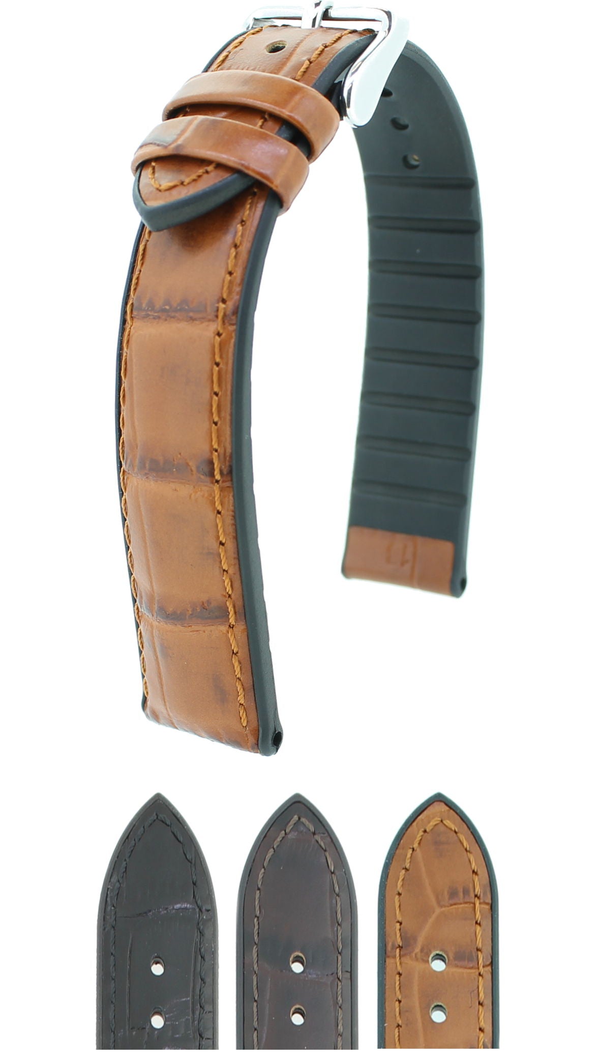 Elegantes Kalbsleder-Armband mit Alligatorprägung und Kautschukfutter